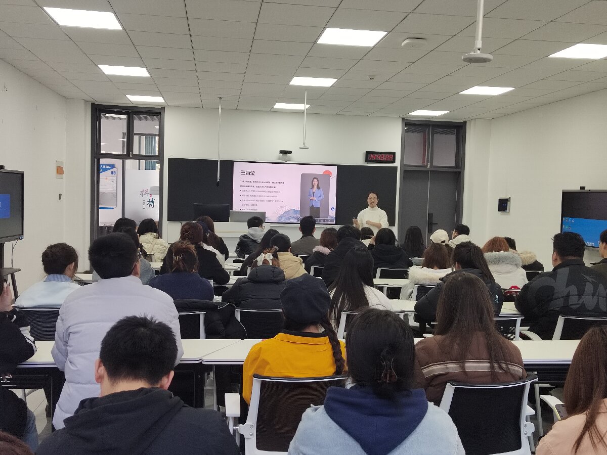 王丽莹老师以"5分钟打动投资人"为切入点,系统讲解了路演准备的全流程。她强调:"路演不是简单的PPT展示,而是通过结构化表达传递项目价值。"讲座中,她通过"黄金三分钟"法则,指导学生如何在前90秒内建立信任,用"痛点-方案-数据"的逻辑链构建说服力。 针对学生普遍存在的"技术思维过重"问题,王老师特别指出:"要用'用户语言'替代'专业术语',例如将'AI算法优化'转化为'让系统更懂你的需求'。"她还现场演示了如何通过肢体语言、语音语调等非语言要素增强感染力。