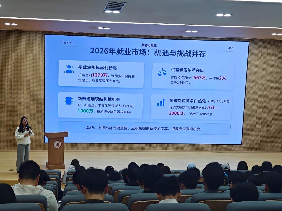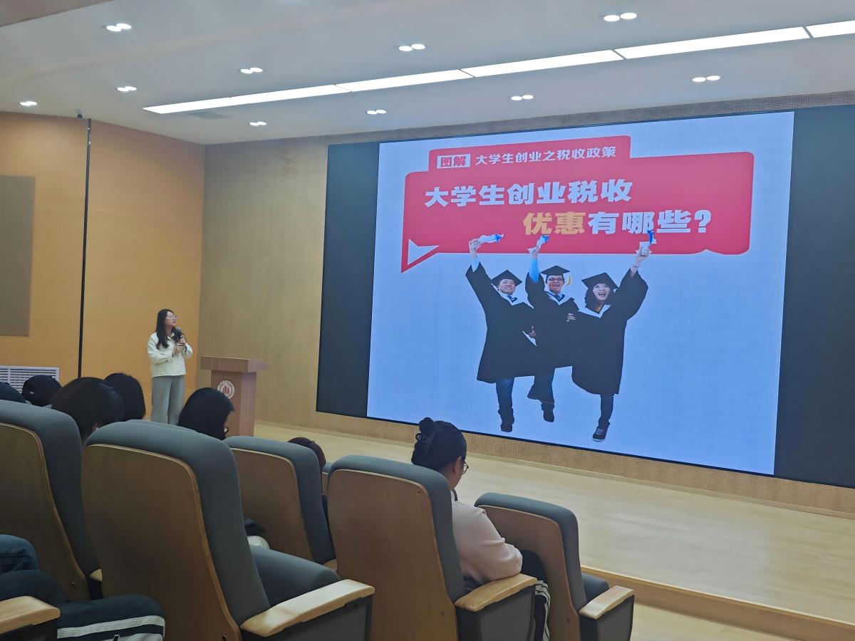 讲座开篇,张老师结合当下市场发展趋势与产业需求格局,为同学们精准剖析大学生创业的优质赛道。她结合学校的专业特色,建议同学们立足所学专业,挖掘创业切入点,让创业项目贴合专业优势与市场需求,提升项目的可行性与发展潜力。