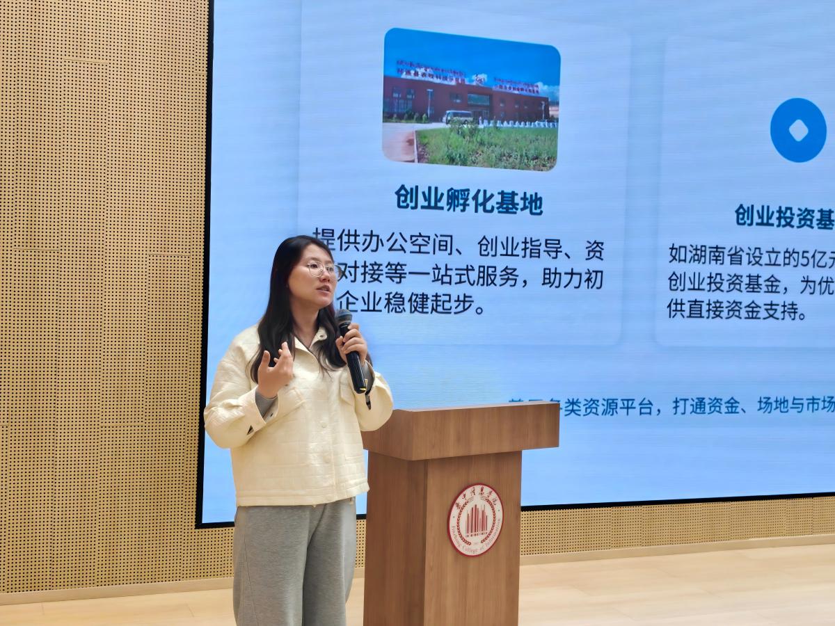 核心环节中,张老师围绕大学生创业全流程,为同学们展开全方位、精细化的创业指导,详细解读国家及地方大学生创业扶持政策,拆解补贴、贷款、场地支持等政策的申请流程与标准,同时梳理校内外孵化基地、创业基金、创新创业竞赛等资源平台,指导学生实现项目从0到1的起步。