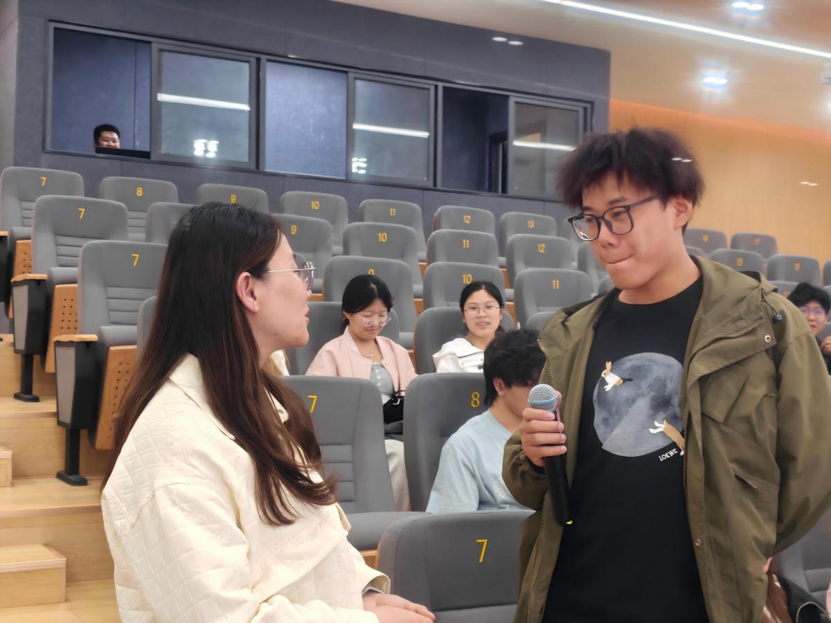 讲座最后,互动答疑环节中,同学们围绕“大学生创业如何平衡学业与项目运营”等实际问题积极提问,张老师逐一细致解答,为同学们化解创业困惑、理清创业思路,现场交流氛围十分热烈。